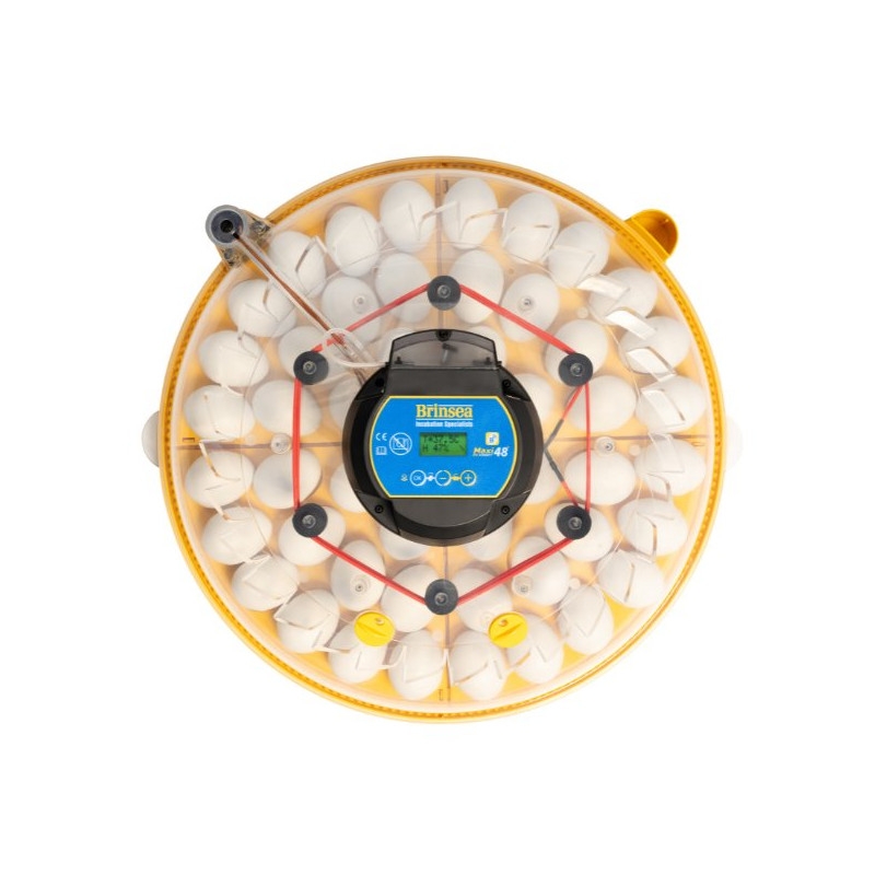 Brinseas Maxi 48 EX har plass til 68 vaktelegg, 48 høneegg, 24 andeegg eller 18 gåseegg i innovative eggkvadranter. Den gir bekvemmeligheten av automatisk snuing med tryggheten av digitale alarmer og gir full digital kontroll over temperatur og fuktighet.