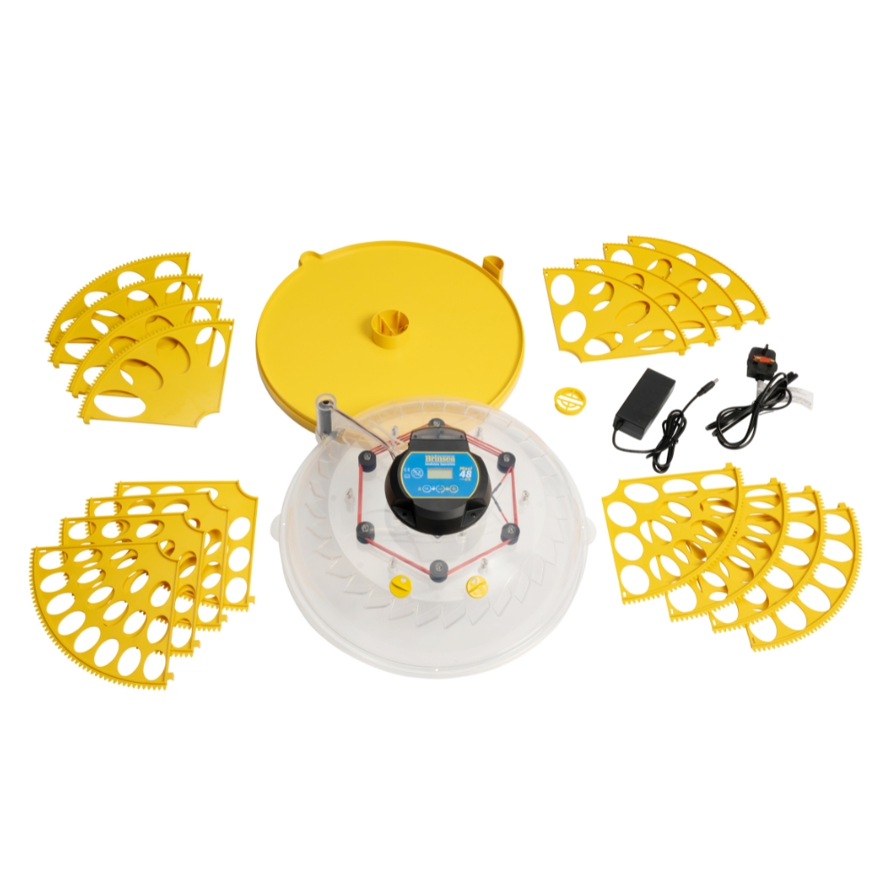 Brinsea,s Maxi 48 EX har plass til 68 vaktelegg, 48 høneegg, 24 andeegg eller 18 gåseegg i innovative eggkvadranter. Den gir bekvemmeligheten av automatisk vending med digitale alarmer og gir full digital kontroll over temperatur og fuktighet.