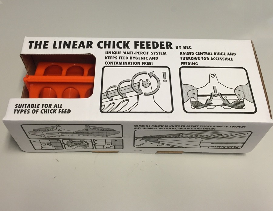 BEC fórtro er 30cm lang (høyde 8.5cm, bredde 11cm) - og tar en halv kilo fôr. Disse er ideelle for unge fugler og kyllinger.