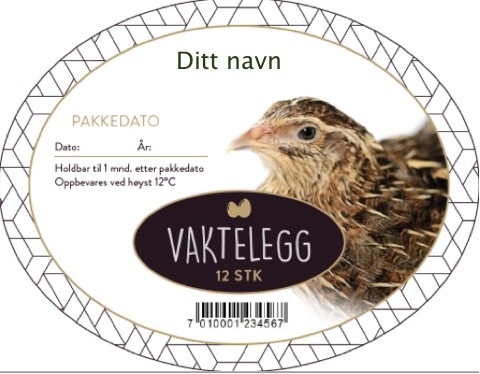 Etiketter til eggbokser 12 egg vaktel - 50 stk Etiketter til eggbokser 12 egg vaktel. 50 stk pr rull. Leveres om ønskelig med eget firmanavn/navn og strekkoder påtrykt. PrisNOK125,00 inkl. mva. På lager Legg inn teksten du vil ha på etiketten Vil du ta i bruk dette valget? Ja Nei Merk! Ekstra pris NOK 20,00 Kjøp Ønskeliste Del dette Produktinfo Produktanmeldelser (0) Etiketter til eggbokser 12 egg vaktel. Du får levert etikettene med eget firmanavn/navn på. 50 etiketter pr rull. Vil du ha egen font på teksten så skriv inn hvilken. Trenger du strekkoder i tillegg så ta kontakt med oss. Skriv en produktanmeldelse og del dine erfaringer med dette produktet med andre kunder. Email Navn Din vurdering? 1 star 2 star 3 star 4 star 5 star 6 star Oppgi en tittel for anmeldelsen din Skriv inn produktanmeldelsen i feltet under