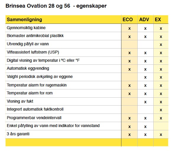 Brinsea Ovation 56 EX er en sofistikert, høy kapasitets rugemaskin med høy ytelse, ideell for et bredt spekter av arter og applikasjoner. Den nøyaktige digitale avlesningen av fukt og temperatur, med omfattende alarmer bidrar til en høy klekkeprosent.