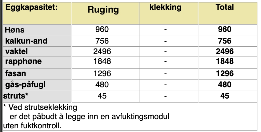 Cimuka Prodi T960 S - modell til rugeperioden og brukes de siste 3 dagene før klekking. Den bør brukes med en separat klekker. Takket være vår modell TR-serie rugebakker, som har en kapasitet på 960 kyllingegg, kan de brukes til egg fra andre fjørfearter også. Den helautomatiske modellen er utstyrt med et viftekjølesystem mot temperaturøkninger.