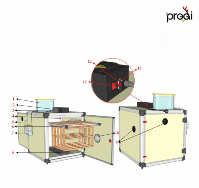 Dens kompakte design og pålitelige ytelse gjør den til et must-ha-verktøy for alle som er lidenskapelig opptatt av birøkt. Perfekt for daglig bruk i bigårder, forskningsanlegg eller utdanningsmiljøer, Queen Bee rugemaskin gir stabil temperaturkontroll, presis fuktighetsregulering og jevn luftstrøm for å garantere vellykket klekking.