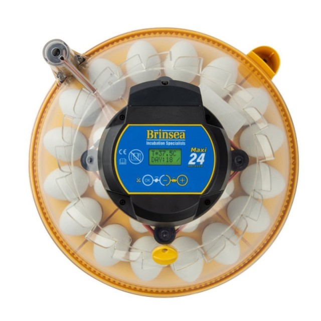 - Maxi 24 Advance digital rugemaskin med fullautomatisk Maxi 24 Advance rugemaskin rommer 24 hønseegg, takket være Brinseas nye, innovative system av eggdisk-kvadranter. Disse kvadrantene settes ganske enkelt sammen for å tillate at egg av én størrelse kan ruges eller egg av forskjellige størrelser kan ruges sammen når man bruker forskjellige artsspesifikke kvadranter. Alle kvadranter kan blandes og matches. Leveres med høne- og andekvadranter som standard.