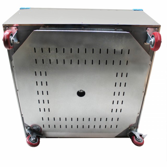 Rustritt stål, ca 400-500 fjærfe pr time. Integrert vannspyler. Føtter med hjul for enkel flytting.