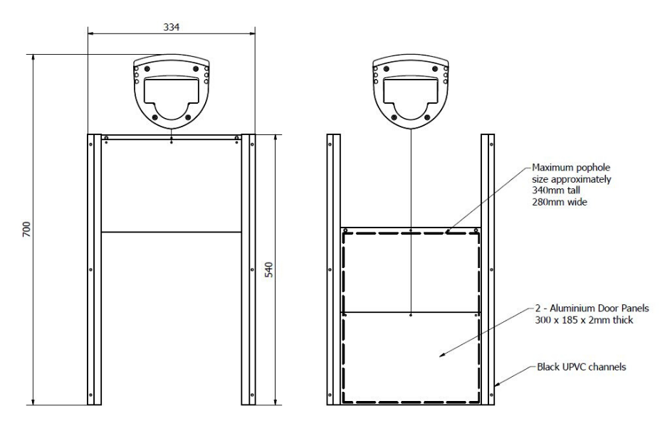 De slitesterke, svarte uPVC-skinnene skrues fast til hønsehuset ditt, og dørpanelene i aluminium faller inn. Full monteringsinstruksjoner følger med.