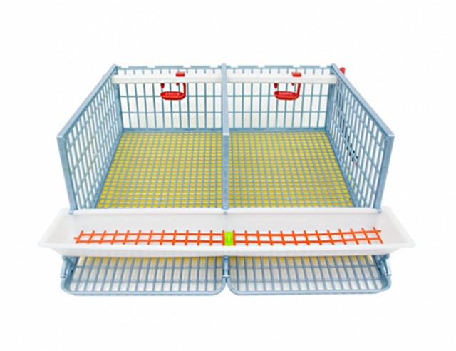 hver 2 dager. Forbrett med nær null fortap. Plast gjødselpanne. Filtrert vann tank, med tilpasset svart silikon slange for å hindre alger. Drikkenipler med automatisk vanningssystem for å hindre vannsøl.
