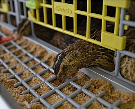 Vaktelbur i aluminium med høykapasitets forer, med en fôring