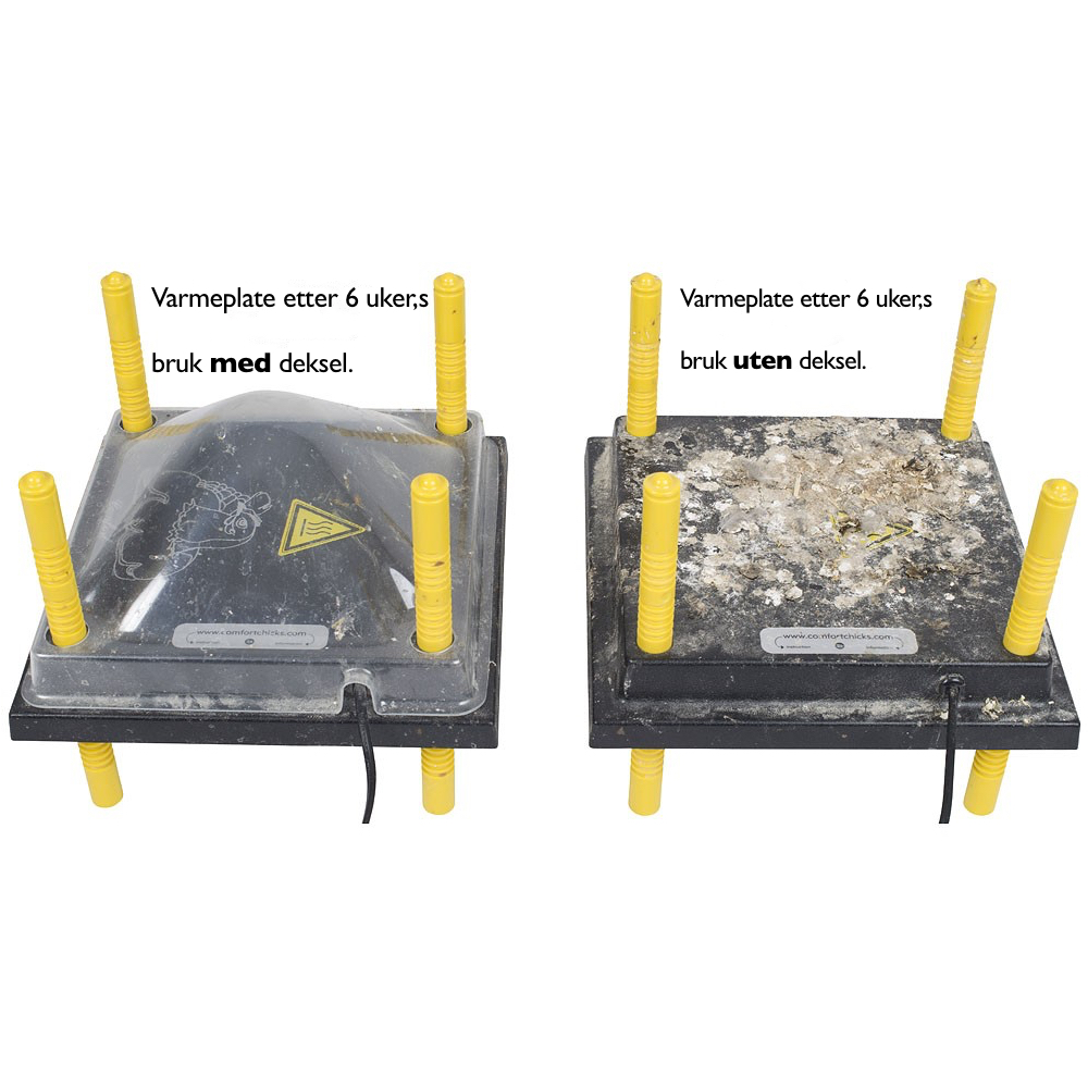 En fantastisk løsning på et kjent problem! Varmeplater blir skitne, fordi kyllingene kan hoppe på toppen av dem. Med dette nye dekselet for varmeplater er dette problemet løst for godt.
