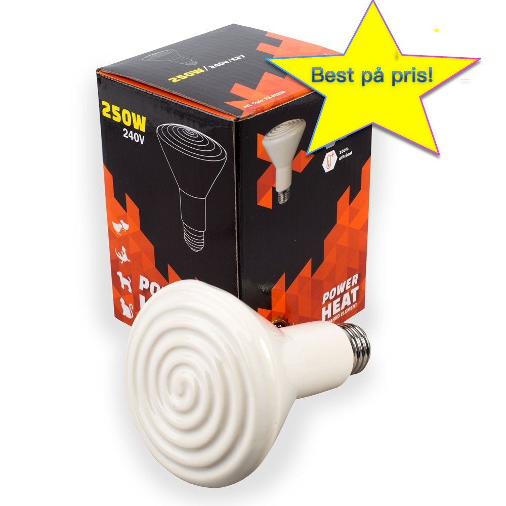 Disse keramiske infrarøde varmepærene gir bare varme og ikke noe lys. De er perfekte for å holde kyllinger varme og lykkelige. En enkelt lyspære kan varme mellom etthundre og etthundre og femti kyllinger, og vil vare i ca 10 000 timer.